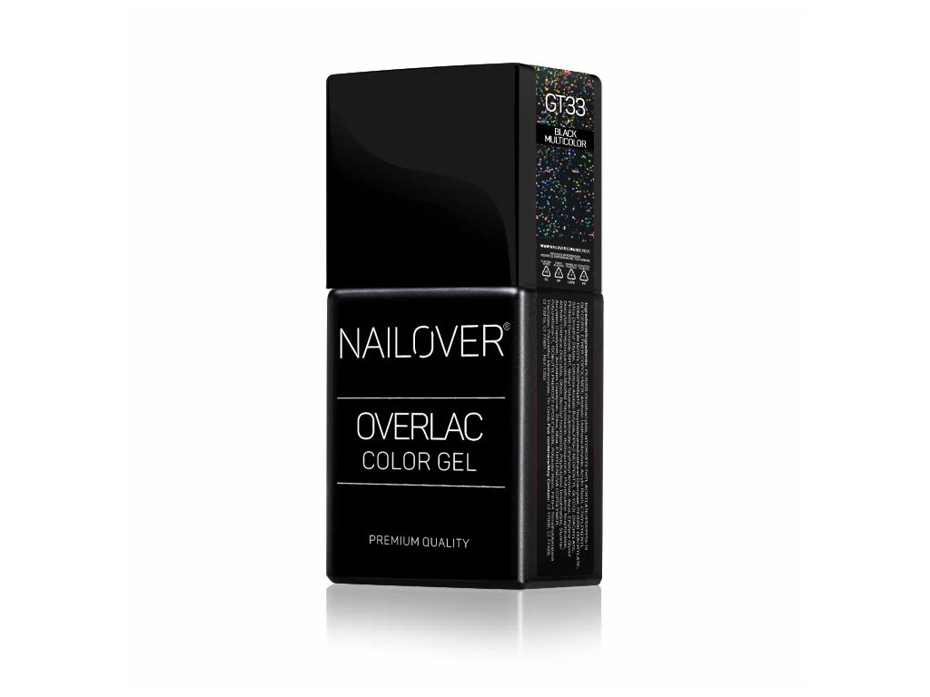 GT33 je temný, plně krycí černý Overlac, který světlo nepohlcuje, ale odráží. Díky jemným multicolor mikroglitterům vytváří na nehtech živý světelný efekt, který je patrný při každém pohybu ruky. Barva působí výrazně a sebevědomě, přesto však zůstává elegantní a vyvážená.